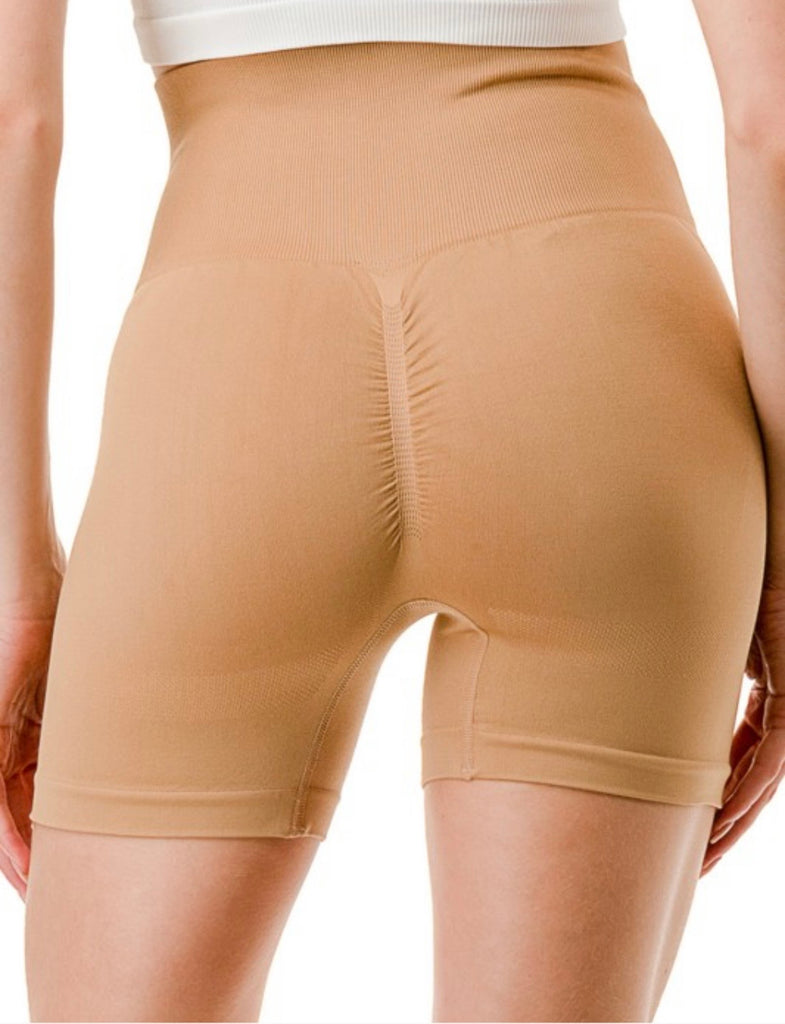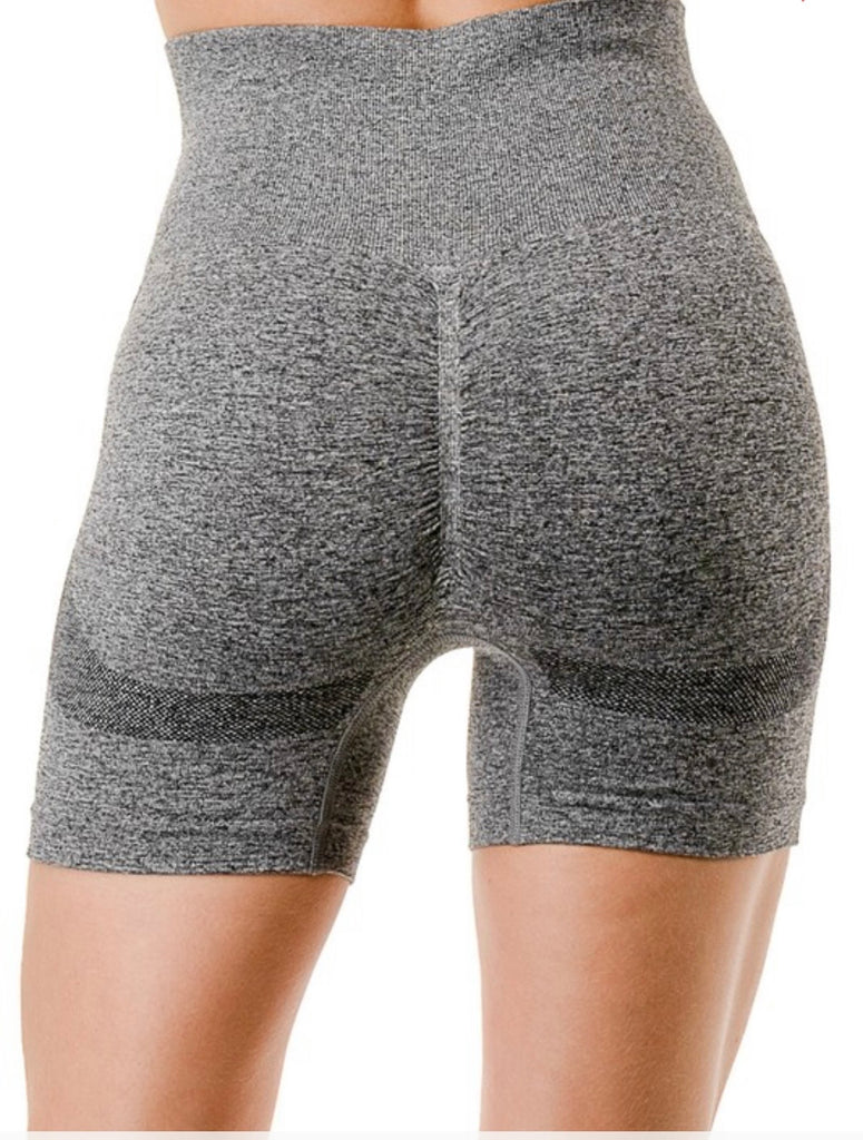 Active workout high rise butt lifting booty shorts solid seamless light weight model is wearing a size small
